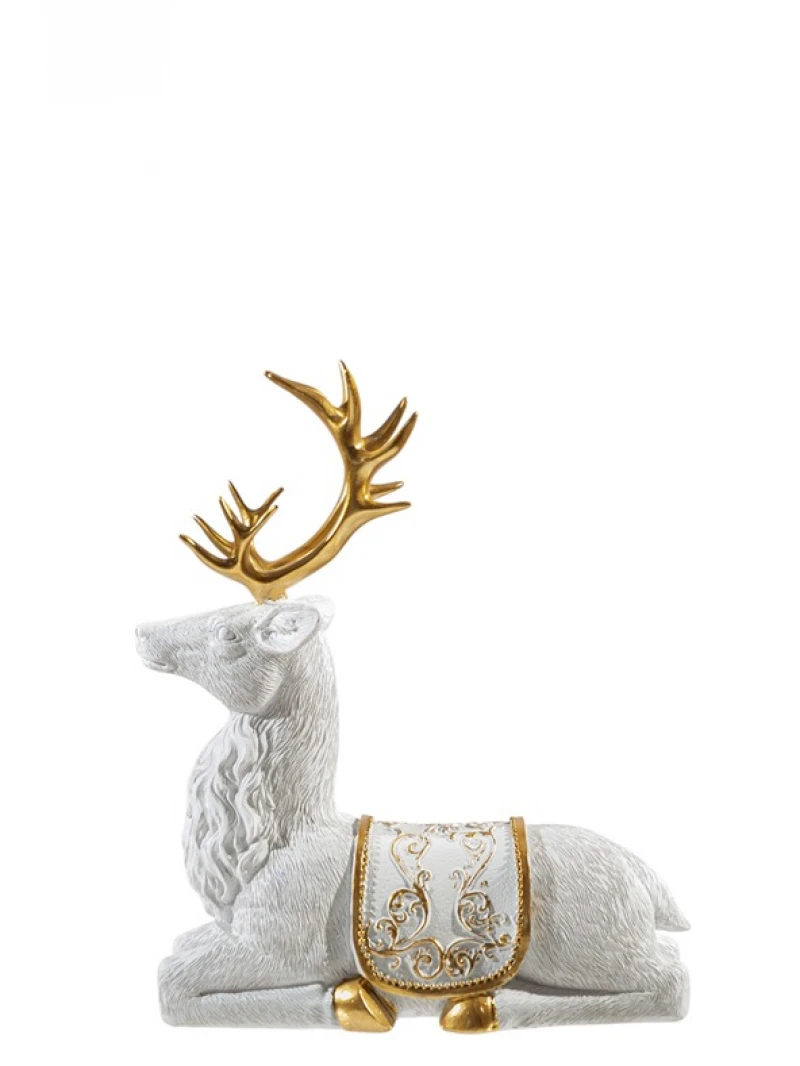 Χριστουγεννιάτικος διακοσμητικός τάρανδος polyester σε λευκό - χρυσό χρώμα από την Zen Collection - Διαστάσεις: 19,8x8x22εκ.