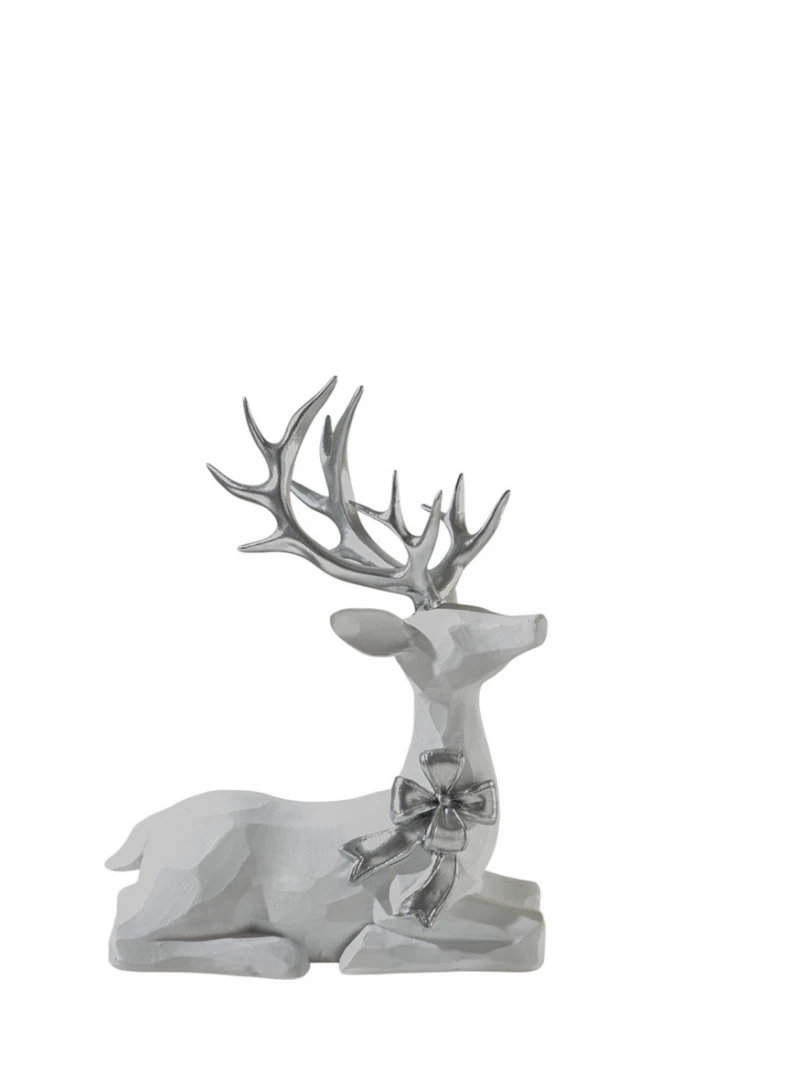 Χριστουγεννιάτικος διακοσμητικός τάρανδος με φιόγκο polyester σε λευκό - ασημί χρώμα από την Zen Collection - Διαστάσεις: 14,5x9x8,5εκ.