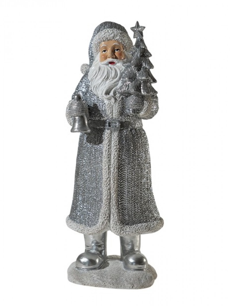 Χριστουγεννιάτικος Διακοσμητικός Άγιος Βασίλης Polyester Λευκός-Ασημί 13x10x34εκ. Zen Collection 25.42.51987