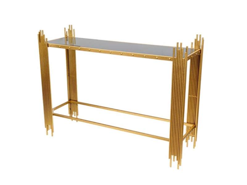 Κονσόλα μεταλλική σε χρυσό χρώμα με μαύρο τζάμι από την Zen Collection - Διαστάσεις: 108,5x32,5x80εκ.