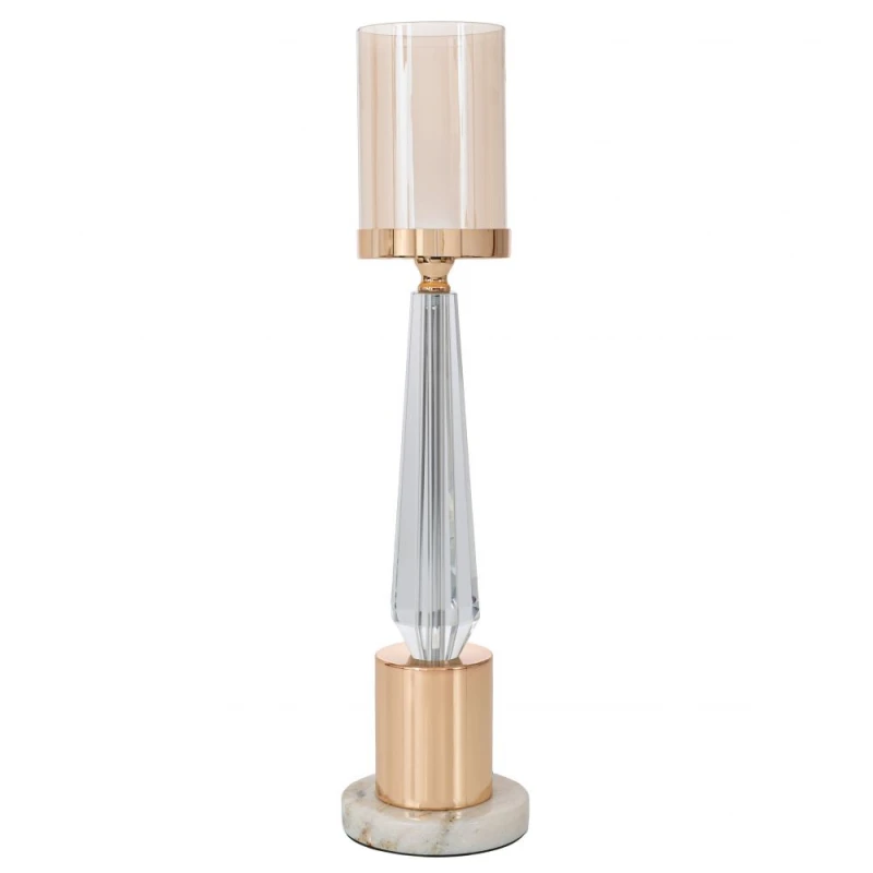 Κηροπήγιο μεταλλικό - γυάλινο με μαρμάρινη βάση και ακρυλικό κορμό σε χρυσό χρώμα από την iliadis - Διαστάσεις: 13x55εκ.