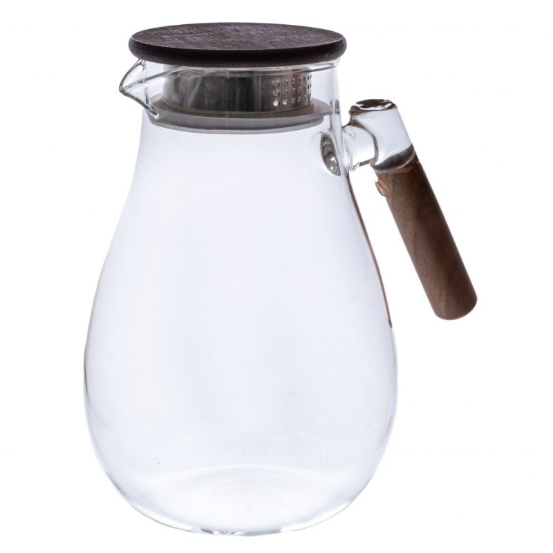 Κανάτα γυάλινη, διάφανη με ξύλινο καπάκι και χερούλι από την iliadis - Διαστάσεις: 12,5x23εκ.