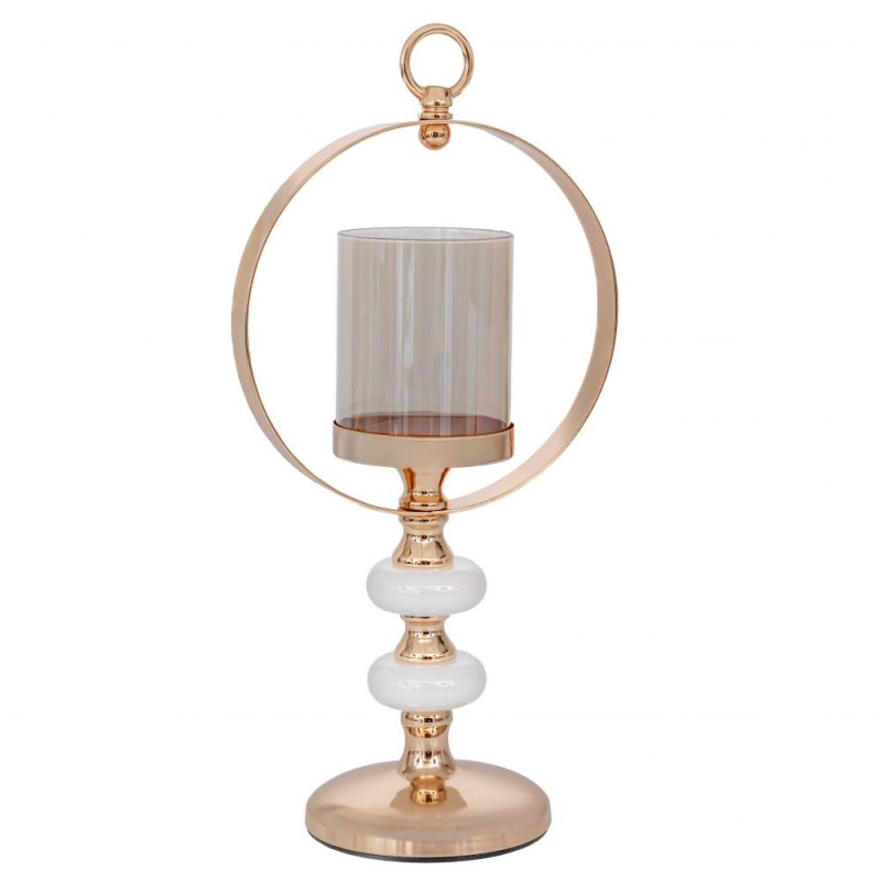 Κηροπήγιο μεταλλικό με γυάλινη βάση για κερί και στεφάνι σε χρυσό χρώμα από την iliadis - Διαστάσεις: 18x12x39εκ.