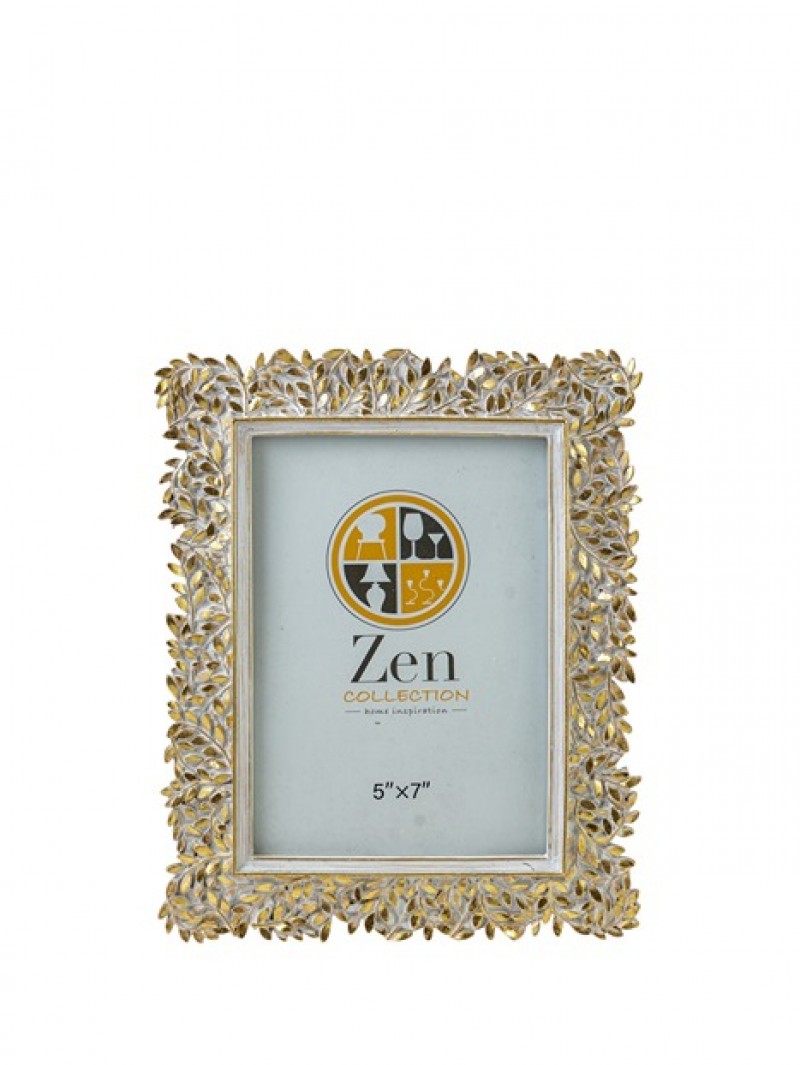 Κορνίζα polyester σε λευκό - χρυσό χρώμα με κλαδάκια από την Zen Collection - Διαστάσεις φωτογραφίας: 13x18εκ.