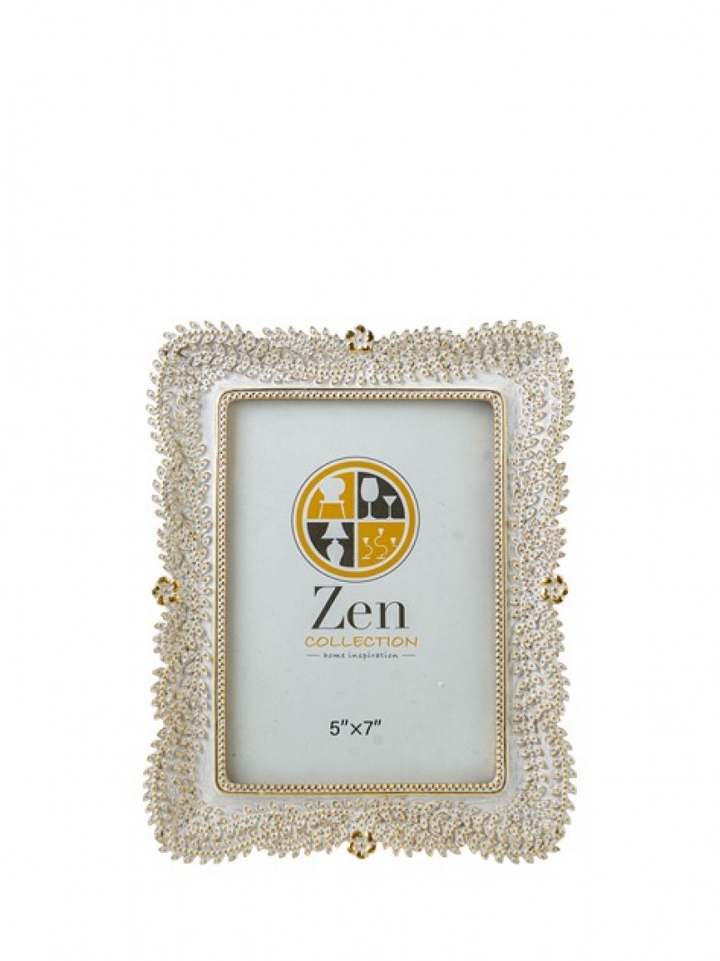 Κορνίζα polyester σε λευκό - χρυσό χρώμα με λουλουδάκια από την Zen Collection - Διαστάσεις φωτογραφίας: 13x18εκ.
