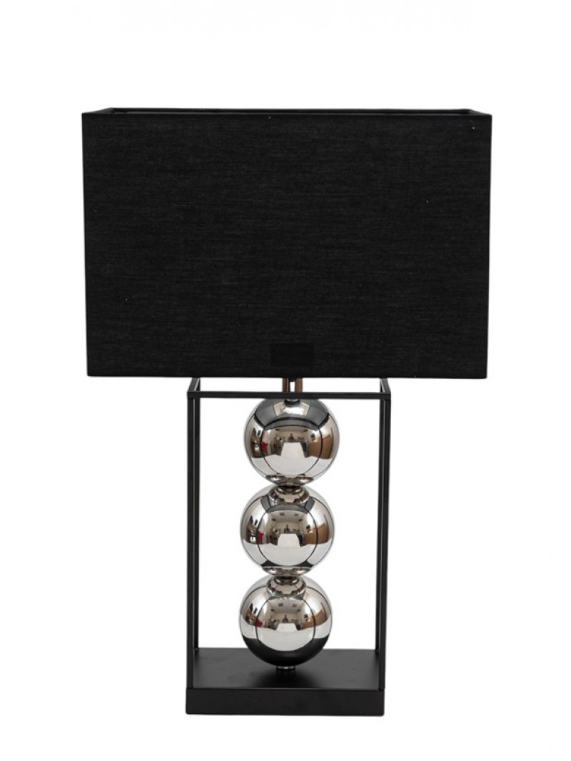 Φωτιστικό επιτραπέζιο μεταλλικό σε μαύρο χρώμα με γυαλιστερούς ασημί κύκλους από την Zen Collection - Συνολικό ύψος:55εκ./ Διάσταση καπέλου: 20x34x22εκ.