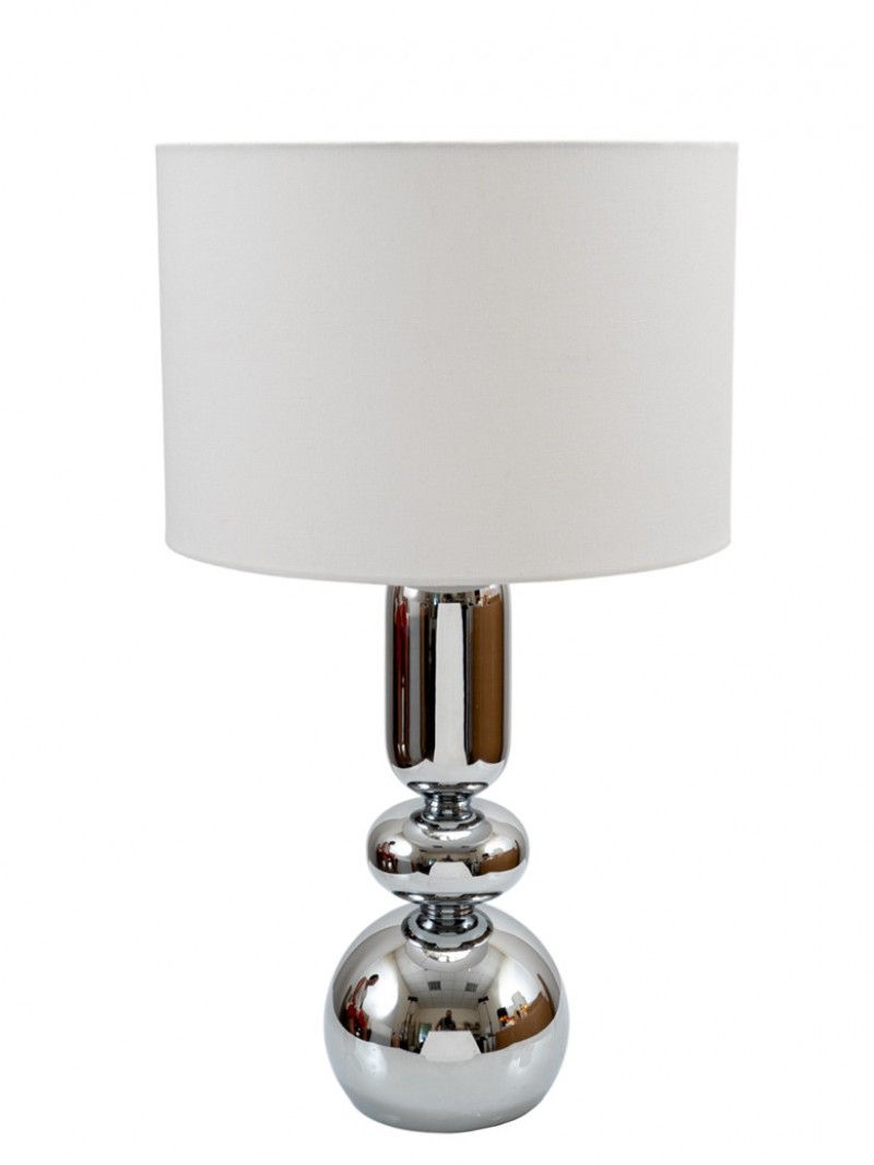 Φωτιστικό επιτραπέζιο μεταλλικό σε ασημί χρώμα με λευκό καπέλο από την Zen Collection - Συνολικό ύψος:58εκ./ Διάσταση καπέλου: 33x22,9εκ.