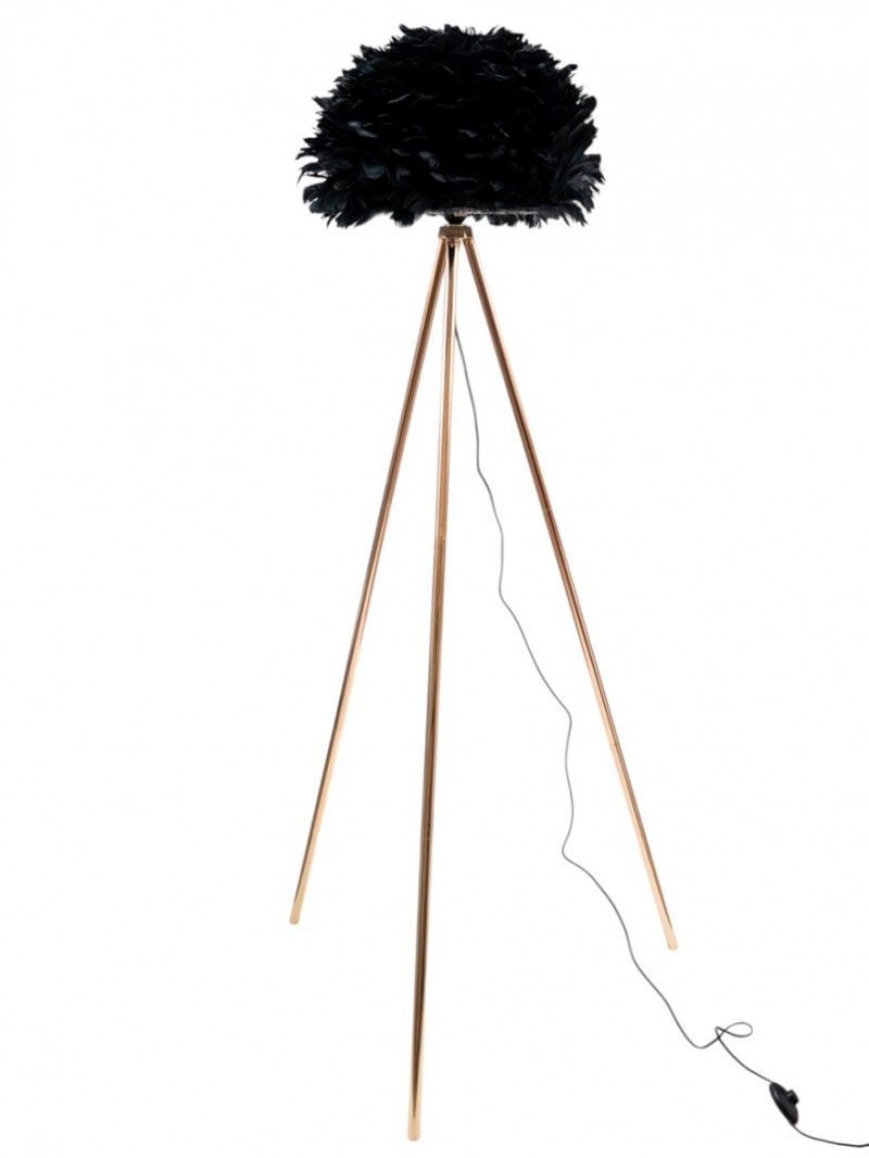 Φωτιστικό επιδαπέδιο μεταλλικό σε χρυσό χρώμα με μαύρα πούπουλα από την Zen Collection - Διαστάσεις καπέλου: 45x26εκ., Ύψος φωτιστικού: 157εκ.
