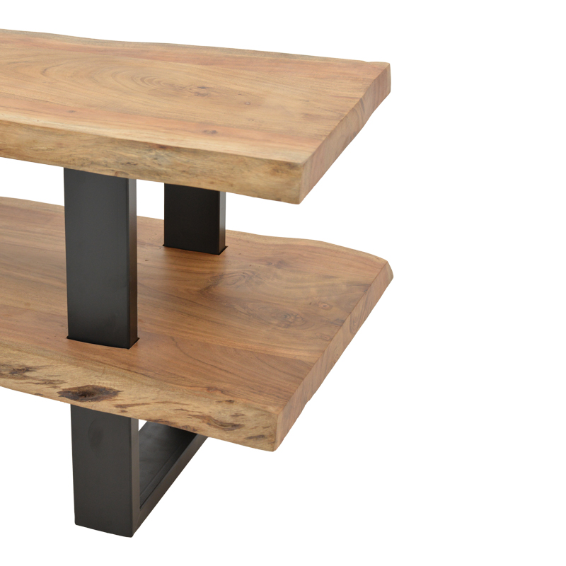 - Αυθεντικό Design: Κατασκευασμένο από συμπαγές ξύλο με φυσικά άκρα (live edge), κάθε επιφάνεια είναι μοναδική, διατηρώντας τον αυθεντικό χαρακτήρα του δέντρου.