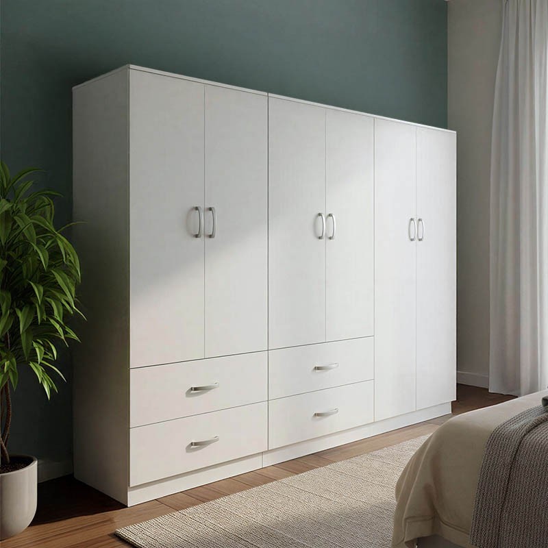 - Περιλαμβάνει έξι πόρτες, εσωτερικά φέρει ράγα για κρεμάστρες και ράφια ενώ κάτω φέρει τέσσερα μεγάλα συρτάρια για την αποθήκευση ρούχων και αξεσουάρ.