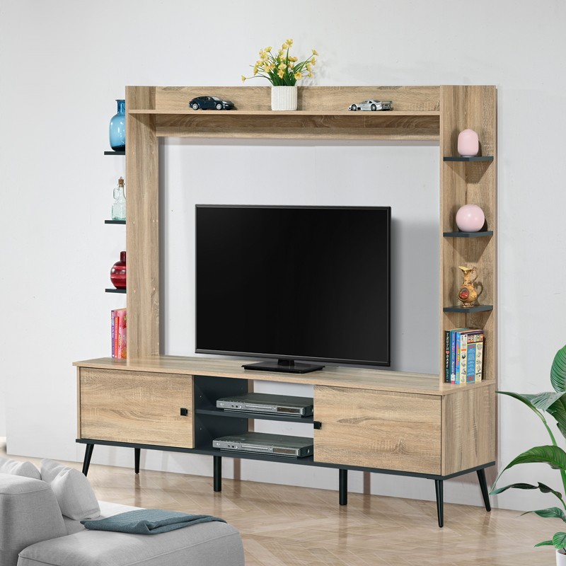 Αναβαθμίστε το σαλόνι σας με αυτό το εντυπωσιακό και λειτουργικό σύνθετο, ιδανικό για να φιλοξενήσει την τηλεόρασή σας, να οργανώσει τις συσκευές πολυμέσων και να προσφέρει άφθονο αποθηκευτικό και εκθεσιακό χώρο. Ο σύγχρονος σχεδιασμός του, το καθιστά ένα κεντρικό και πρακτικό κομμάτι στο σπίτι σας.
