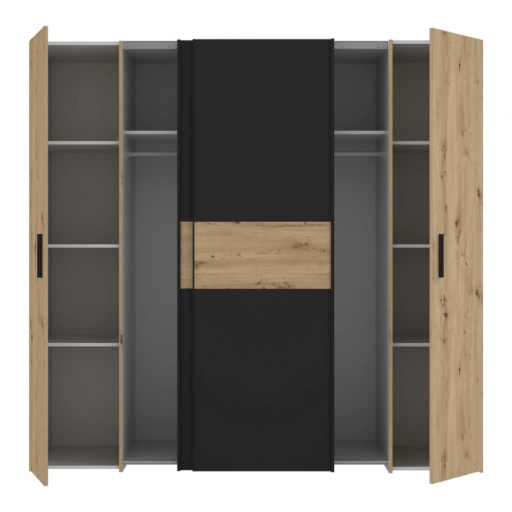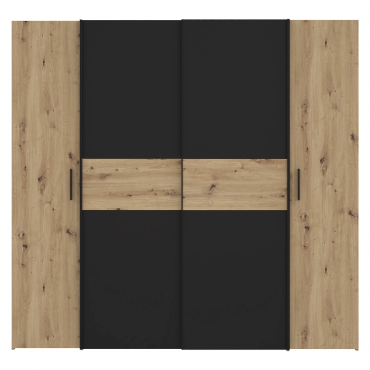 Ντουλάπα ρούχων Bekerk pakoworld τετράφυλλη μαύρο-oak μελαμίνης 200x61.5x190.5εκ