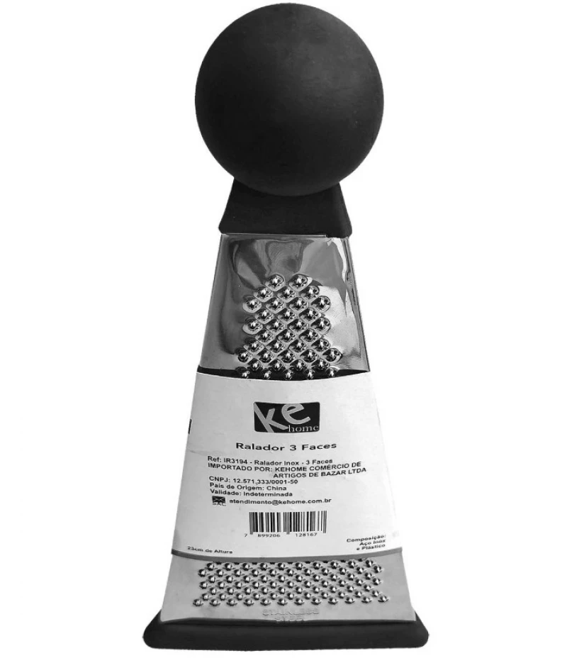 Πρακτικός τρίφτης 3 πλευρών ανοιξείδωτος, ιδανικός για τρίψιμο λαχανικών, τυριών και φρούτων. Με εργονομική σφαίρα–λαβή για σταθερό και άνετο κράτημα, προσφέρει εύκολη χρήση και καλύτερο έλεγχο. Απαραίτητο εργαλείο για κάθε κουζίνα.