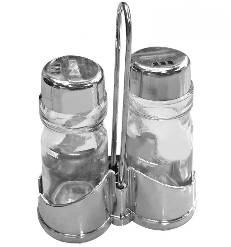 Κομψό σετ αλατοπίπερου με γυάλινα δοχεία και καπάκια inox, ιδανικό για καθημερινό σερβίρισμα. Συνοδεύεται από μεταλλική βάση για εύκολη μεταφορά και τακτοποίηση στο τραπέζι. Πρακτικό, ανθεκτικό και κατάλληλο για κάθε κουζίνα ή επαγγελματικό χώρο.
