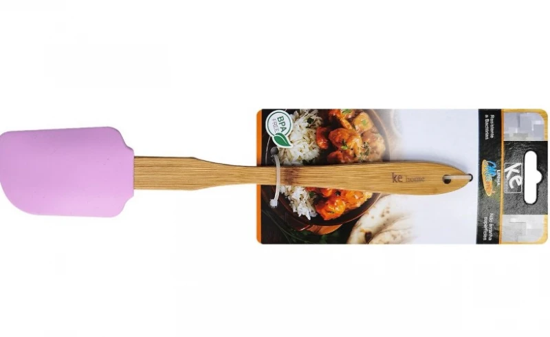Ευέλικτη σπάτουλα σιλικόνης με ανθεκτική ξύλινη λαβή, ιδανική για ανάμειξη, άπλωμα και ανακάτεμα χωρίς να χαράζει τα σκεύη. Ανθεκτική στη θερμότητα και εύκολη στο καθάρισμα, αποτελεί απαραίτητο εργαλείο για μαγειρική και ζαχαροπλαστική.