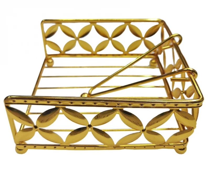 Κομψή μεταλλική χαρτοπετσετοθήκη σε χρυσό χρώμα με διακοσμητικό μοτίβο φύλλων. Διαθέτει πρακτικό μεταλλικό βάρος για να συγκρατεί τις χαρτοπετσέτες στη θέση τους. Ιδανική για το τραπέζι, τον μπουφέ ή την κουζίνα, προσθέτοντας μια elegant πινελιά σε κάθε χώρο.