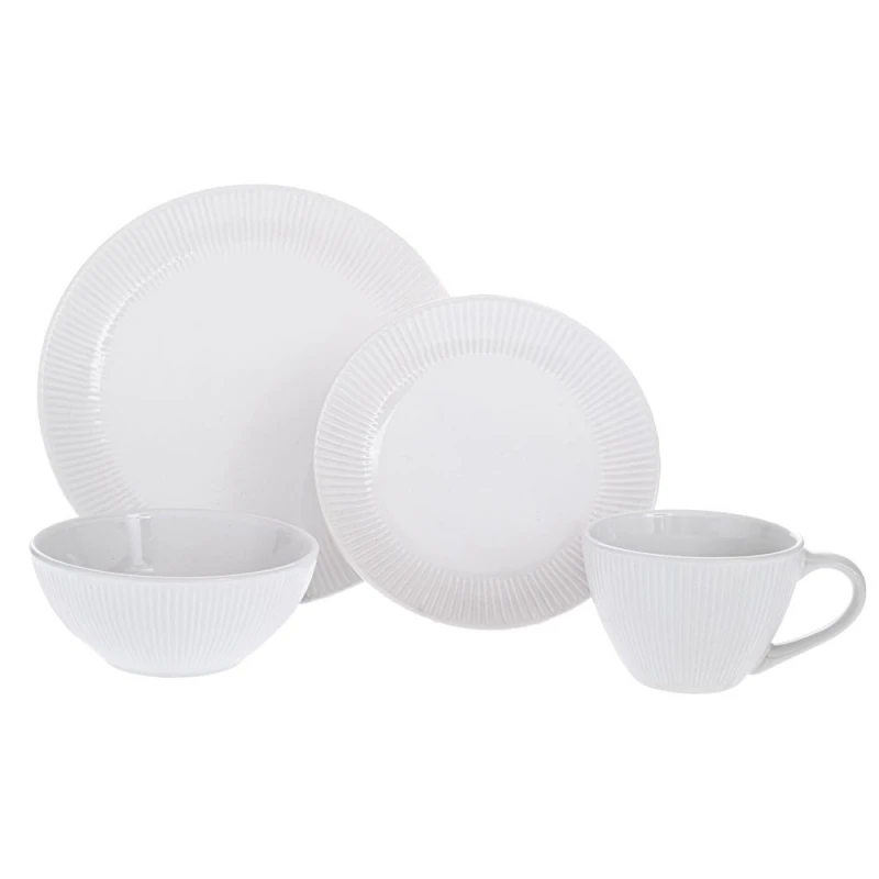 Σετ 16τμχ σερβίτσιο κεραμικό σε λευκό χρώμα από την iliadis. Το σετ περiλαμβάνει 4 πιάτα ρηχά 28εκ., 4 φρούτου 20εκ., 4 μπώλ 10x11εκ. και 4 κούπες 250ml. Κατάλληλο για πλυντήριο πιάτων καί φούρνο μικροκυμάτων.