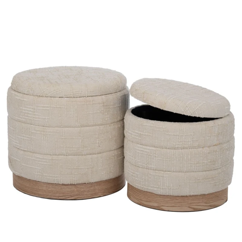 Σετ 2τμχ σκαμπώ υφασμάτινο με αποθηκευτικό χώρο και ξύλινη βάση σε εκρού χρώμα από την iliadis - Διαστάσεις: 40x42εκ./34x35εκ.