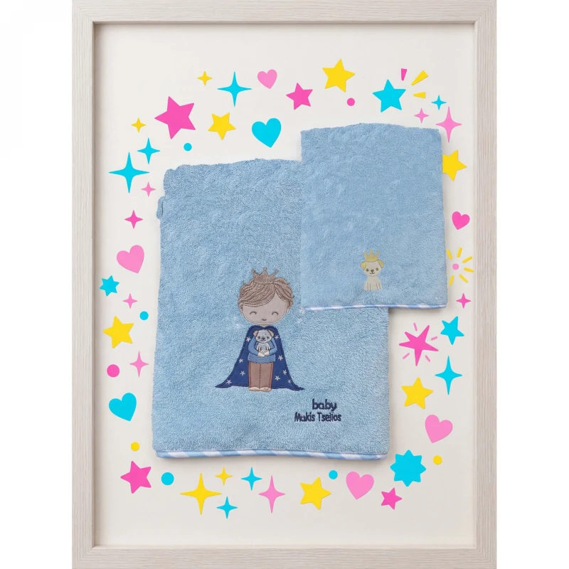 Σετ 2τμχ πετσέτες bebe, 100% βαμβάκι σε μπλε χρώμα από την εταιρεία Makis Tselios Home. Το σετ περιλαμβάνει: 1 πετσέτα 40x60εκ. και 1 πετσέτα 70x140εκ.
