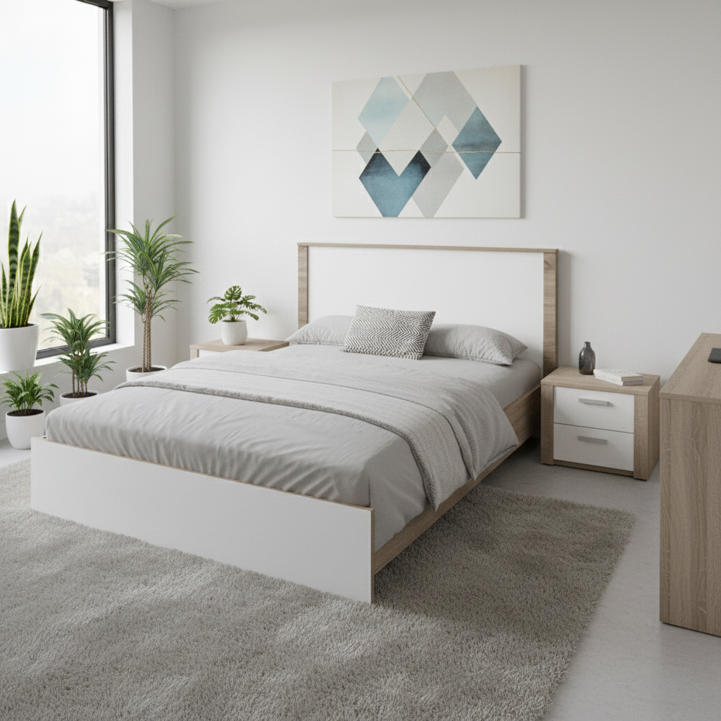 Κρεβάτι Athos pakoworld σε sonoma-λευκή απόχρωση 140x200εκ