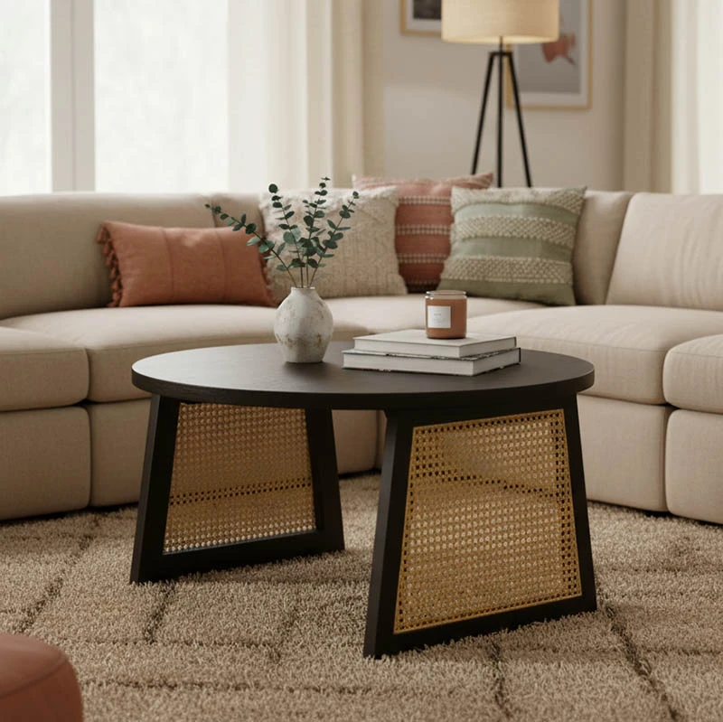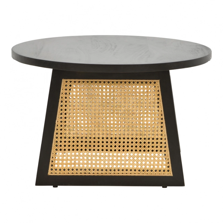 Τραπέζι Tamarind pakoworld ξύλο mango-φυσικό rattan σε μαύρη απόχρωση Φ65x40εκ