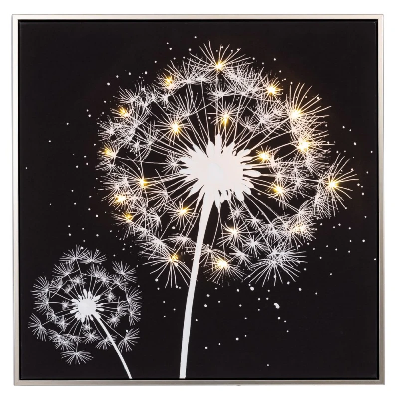 Πίνακας σε τυπωμένο καμβά με πικραλίδα και φως led σε ασημί κορνίζα από την iliadis - Διαστάσεις: 60x60εκ.