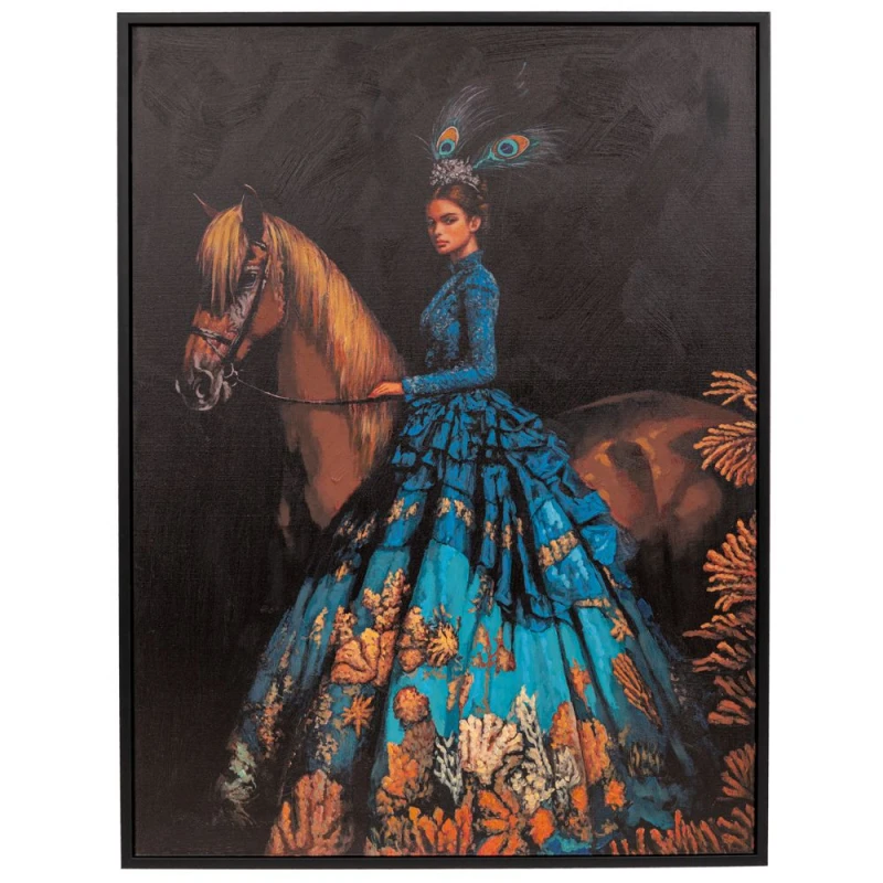Χειροποίητος πίνακας σε μαύρη κορνίζα με γυναικεία φιγούρα και άλογο από την iliadis - Διαστάσεις: 94x124εκ.