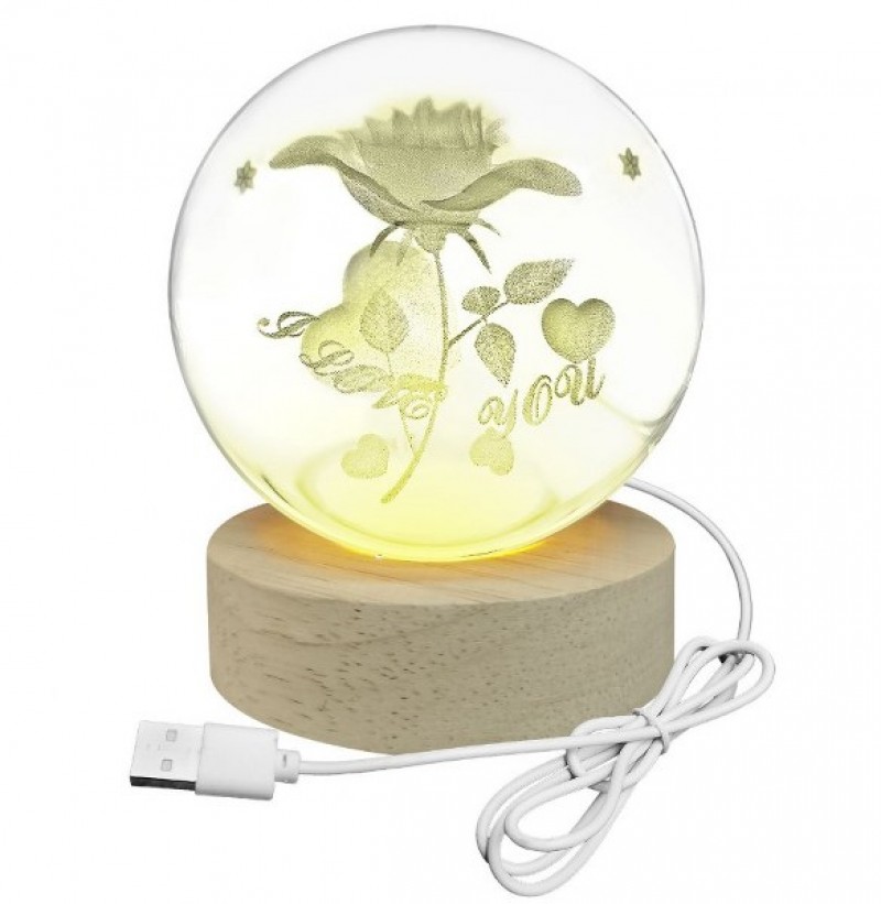 Γυάλινη μπάλα I Love you με βάση, καλώδιο usb και 6 LED από την Homie - Διαστάσεις: 8εκ.