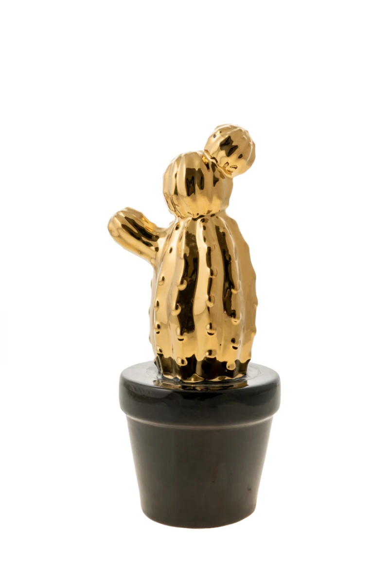 Διακοσμητικός επιτραπέζιος κάκτος κεραμικός σε χρυσό χρώμα με μαύρη κεραμική γλάστρα από την Zen Collection - Διαστάσεις: 12,7εκ.