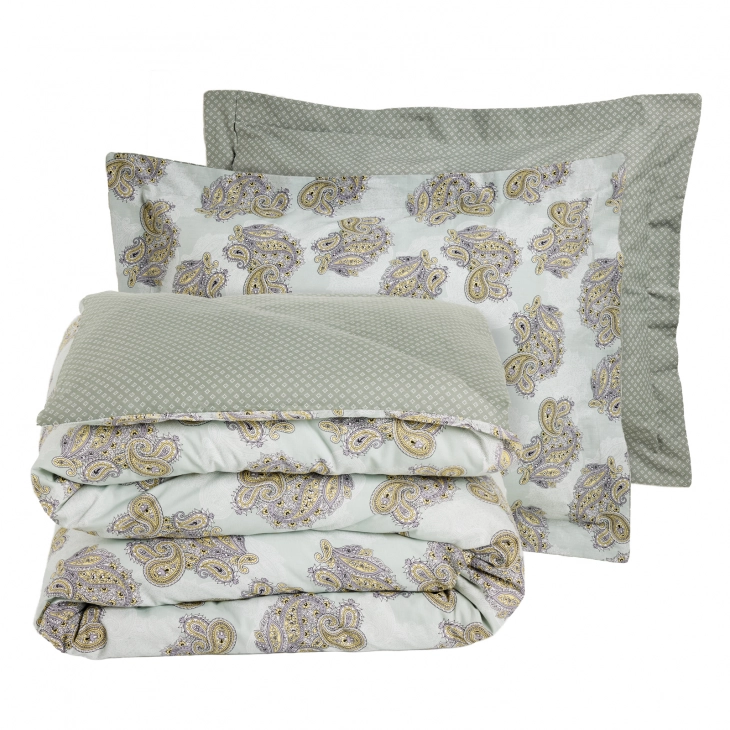 Σετ Παπλωματοθήκη Βαμβακερή Υπέρδιπλη 220x240εκ. Happy 9686 Mint Das Home