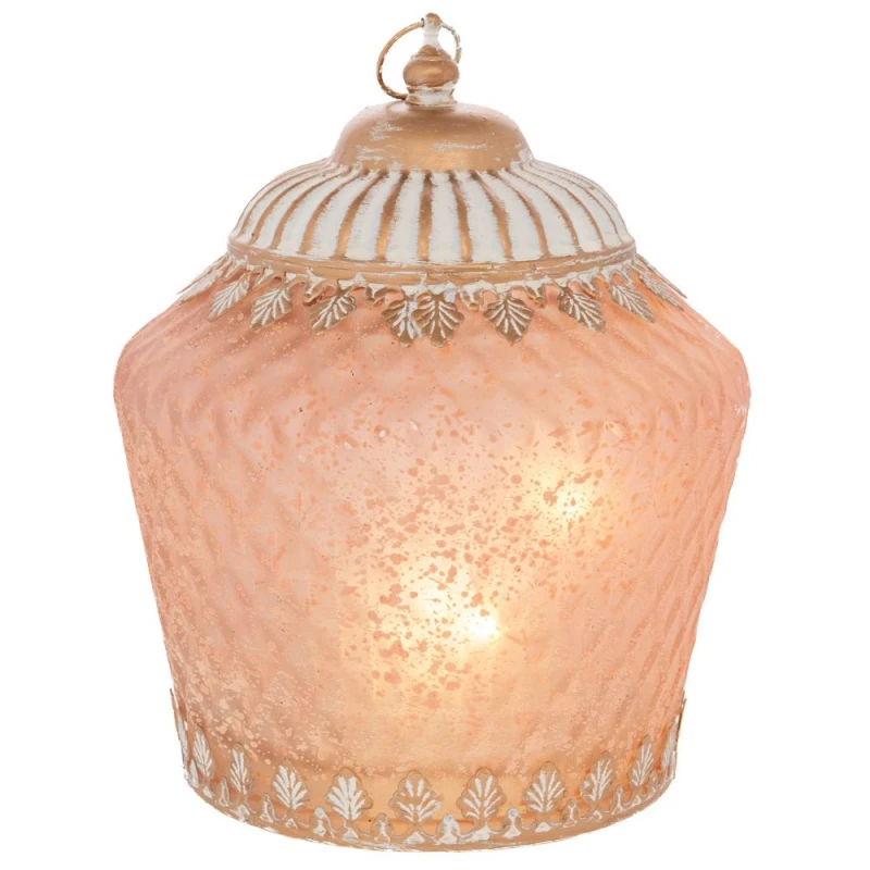 Φαναράκι Γυαλινό-Μεταλλικό Ροζ Με Led Φως 15x15x19εκ. iliadis 92585