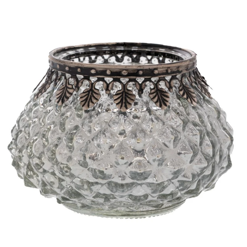 Κηροπήγιο Για Ρεσώ Γυάλινο-Μεταλλικό Διάφανο-Ασημί 11,5x8εκ. iliadis 92582