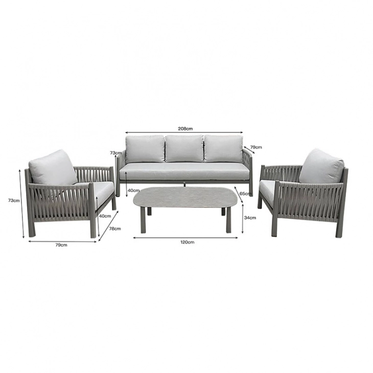 Σαλόνι εξωτερικού χώρου Feralda pakoworld μπεζ αλουμίνιο-rope με ύφασμα σε απόχρωση ανοιχτό γκρι