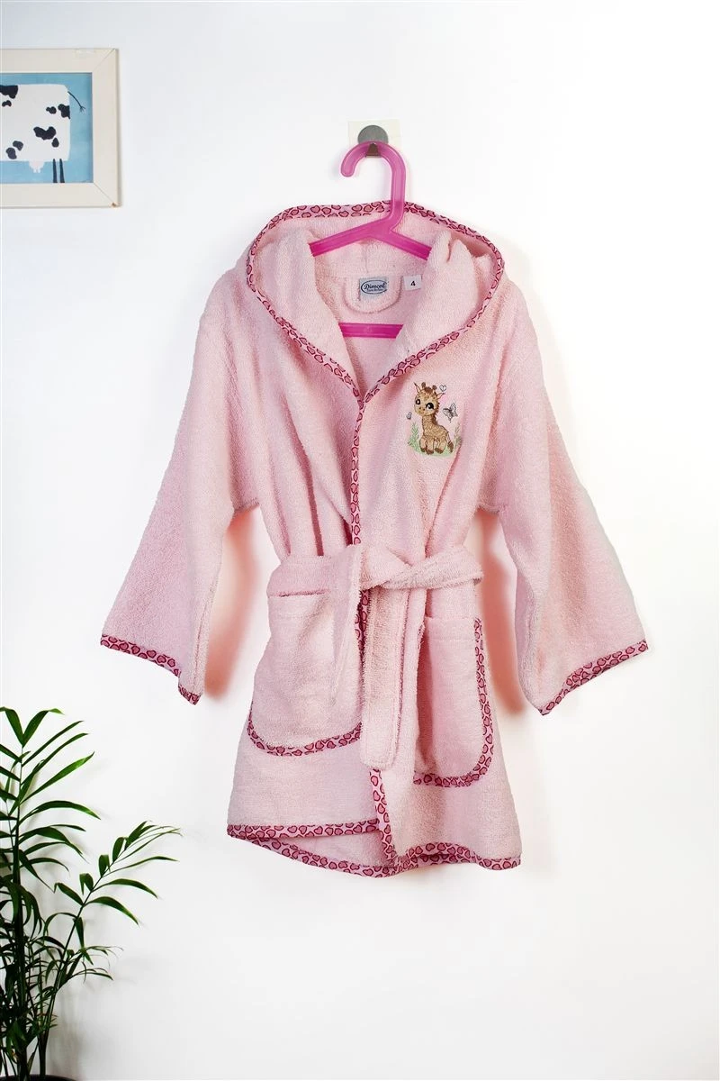 Μπουρνούζι Παιδικό Με Κουκούλα Βαμβακερό Giraffe 171 Pink Size 02 DimCol