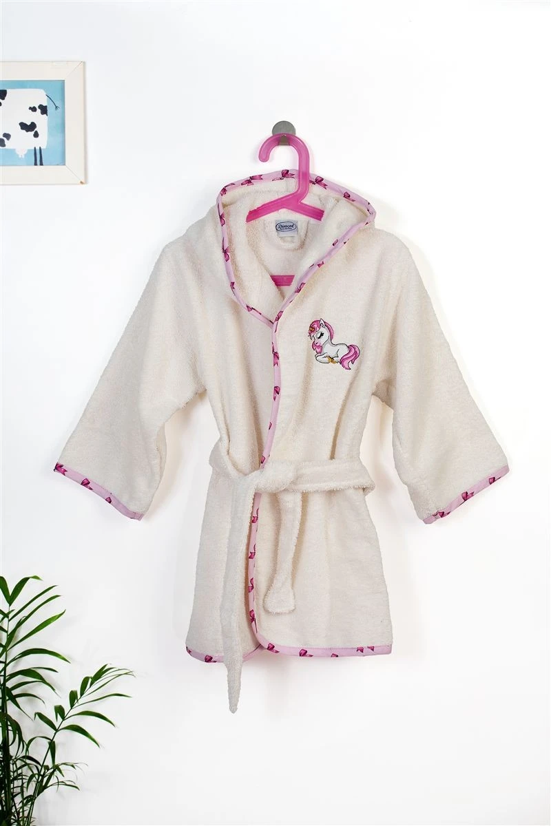 Μπουρνούζι Παιδικό Με Κουκούλα Βαμβακερό Unicorn 189 Ecru-Pink Size 02 DimCol