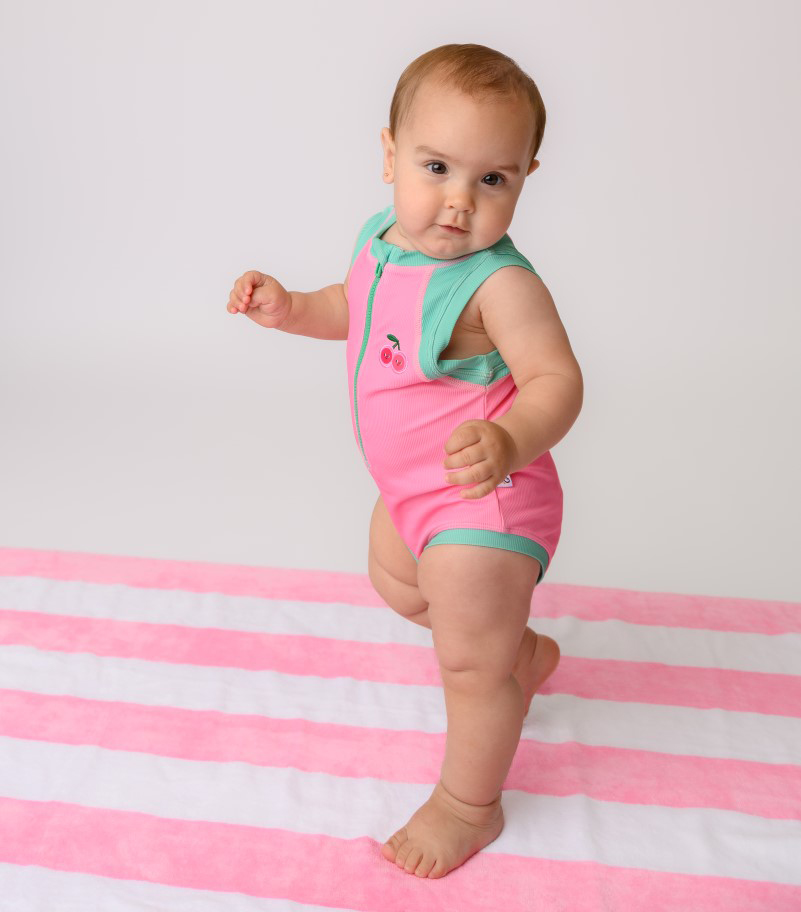 Το Ολόσωμο Μαγιώ με Στάμπα Cherry/Pink-Green από τη Zoocchini είναι η ιδανική επιλογή για άνεση και ελευθερία κινήσεων μέσα και έξω από το νερό. Με μίνιμαλ σχεδιασμό, χωρίς μανίκια και χωρίς πόδια, προσφέρει δροσερή αίσθηση και ευκολία στο κολύμπι και στο παιχνίδι.