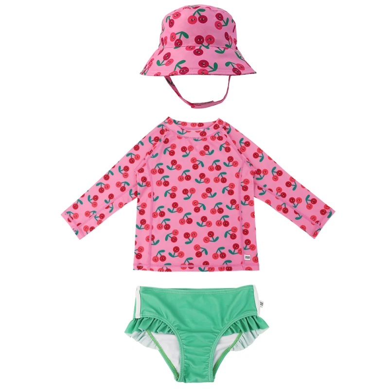 Σετ Μαγιό Με Bucket Καπέλο Και Μπλούζα UV 12-24μηνών Cherry Zoocchini ZOO16021