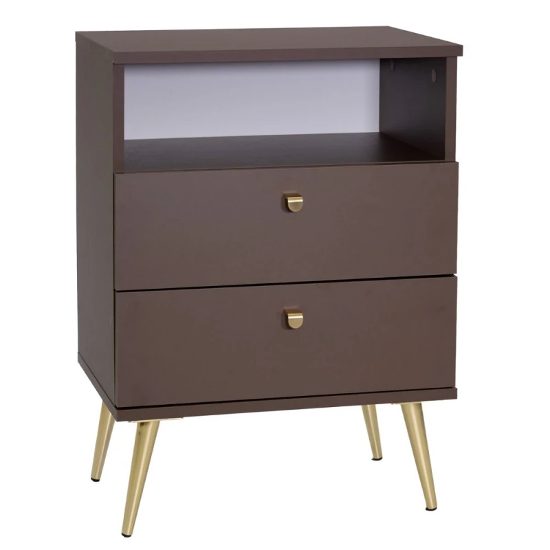 Κομοδίνο Ξύλινο Με Μεταλλικά Πόδια Καφέ-Χρυσό Stolik 50x34x69εκ. iliadis 93746