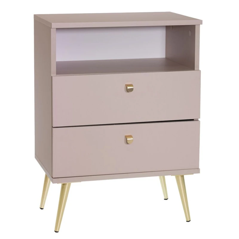 Κομοδίνο Ξύλινο Με Μεταλλικά Πόδια Μπεζ-Χρυσό Stolik 50x34x69εκ. iliadis 93750