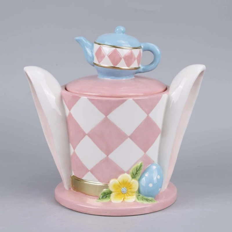 Μπισκοτιέρα Κεραμική Καπέλο Λαγού Ροζ-Σιέλ 27x19x26εκ. iliadis 92386