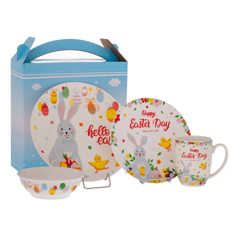 Το σετ περιλαμβάνει: 2 πιάτα, 1 μπωλ και 1 κούπα (σε κουτί δώρου).