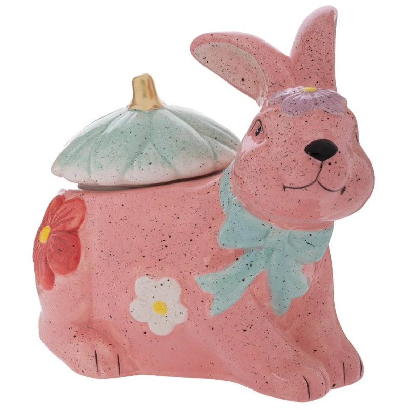 Μπισκοτιέρα κεραμική λαγός σε ροζ χρώμα με σιέλ καπάκι από την iliadis - Διαστάσεις: 25x16,5x22εκ.