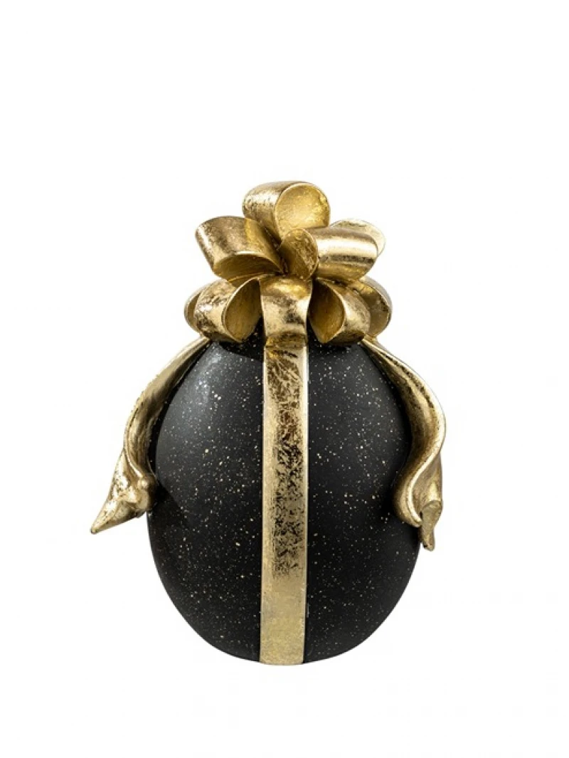 Διακοσμητικό πασχαλινό αυγό polyester σε μαύρο χρώμα με χρυσό φιόγκο από την Zen Collection - Διαστάσεις: 11,5x13x17,8εκ.