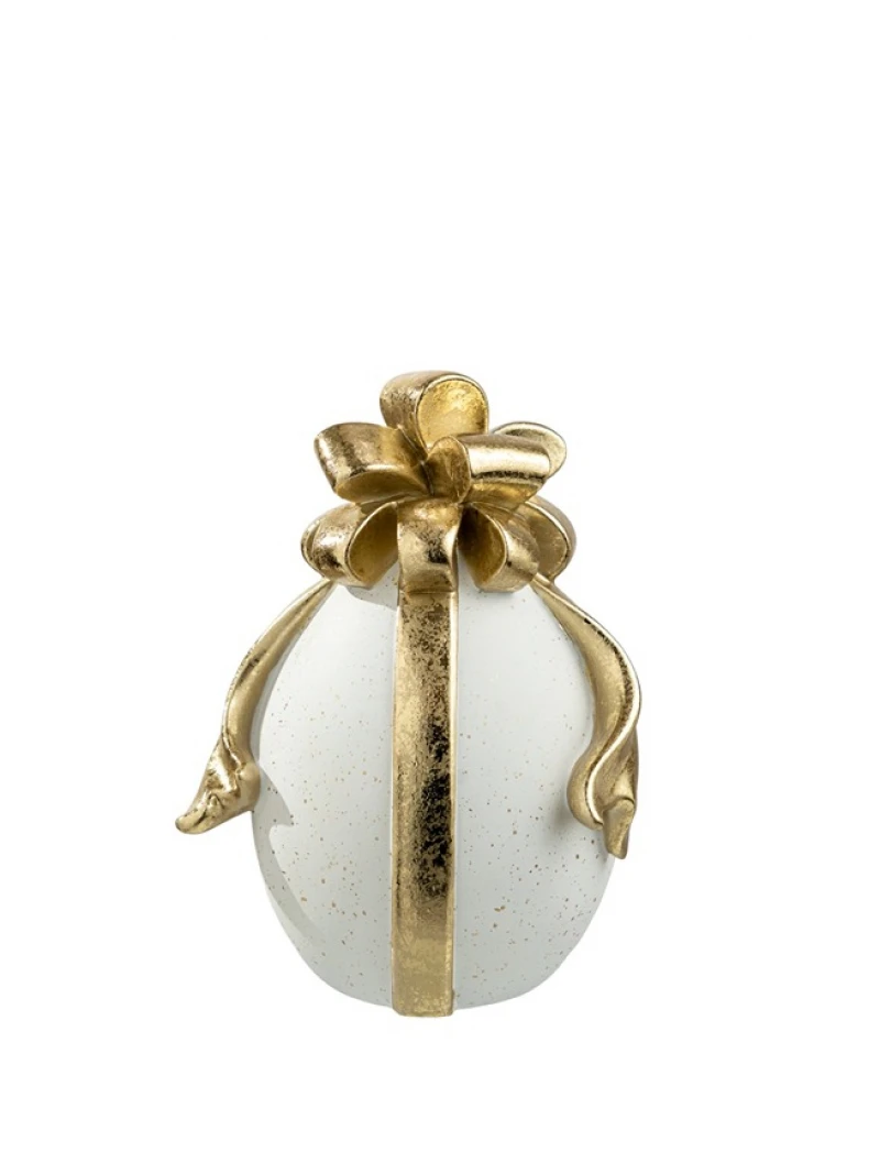 Διακοσμητικό πασχαλινό αυγό polyester σε λευκό χρώμα με χρυσό φιόγκο από την Zen Collection - Διαστάσεις: 9,5x10,5x15,3εκ. - Η ελάχιστη ποσότητα αγοράς για αυτό το προϊόν είναι 2τμχ.
