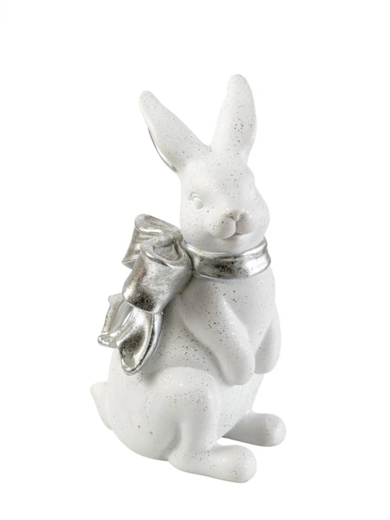 Διακοσμητικός πασχαλινός λαγός polyester σε λευκό χρώμα με ασημί φιόγκο από την Zen Collection - Διαστάσεις: 11,5x10x20,8εκ.