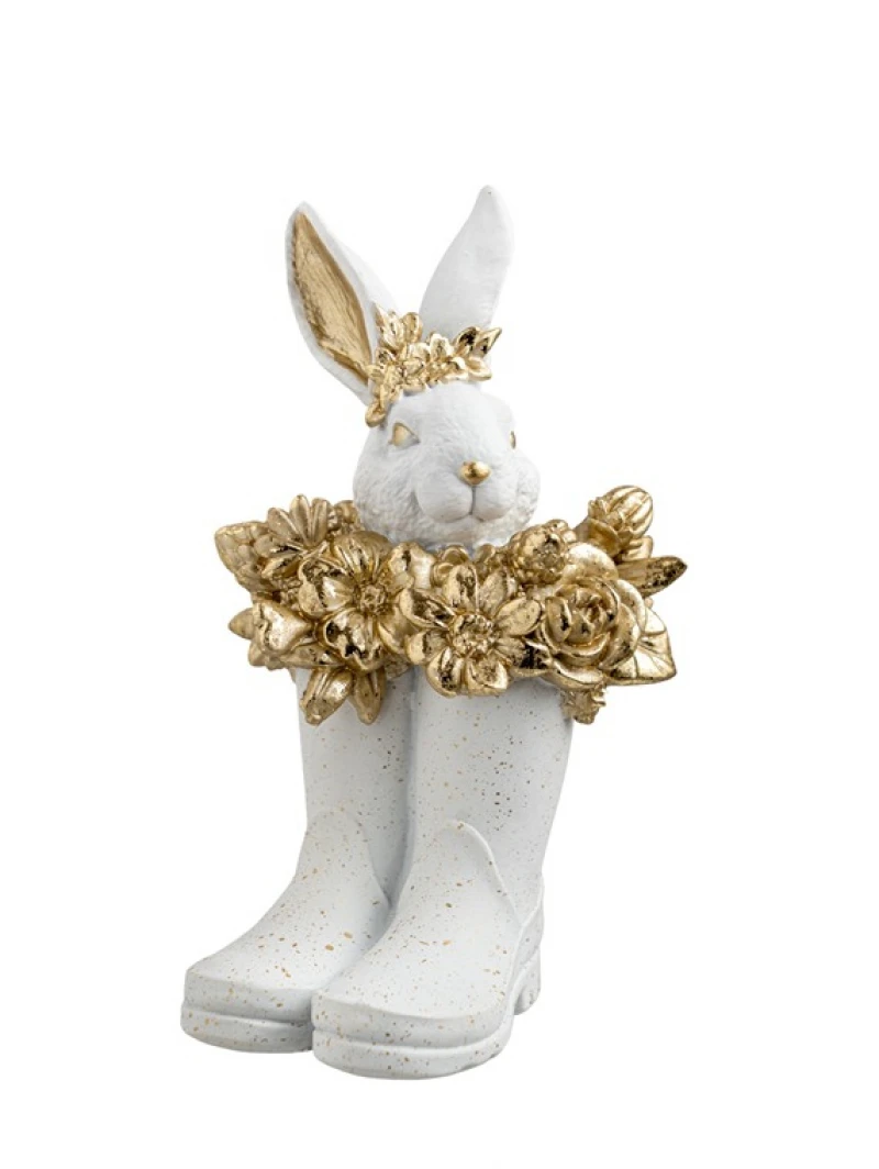 Διακοσμητική πασχαλινή μπότα με λαγό polyester σε λευκό χρώμα με χρυσές λεπτομέρειες από την Zen Collection - Διαστάσεις: 10,5x10,5x19εκ.