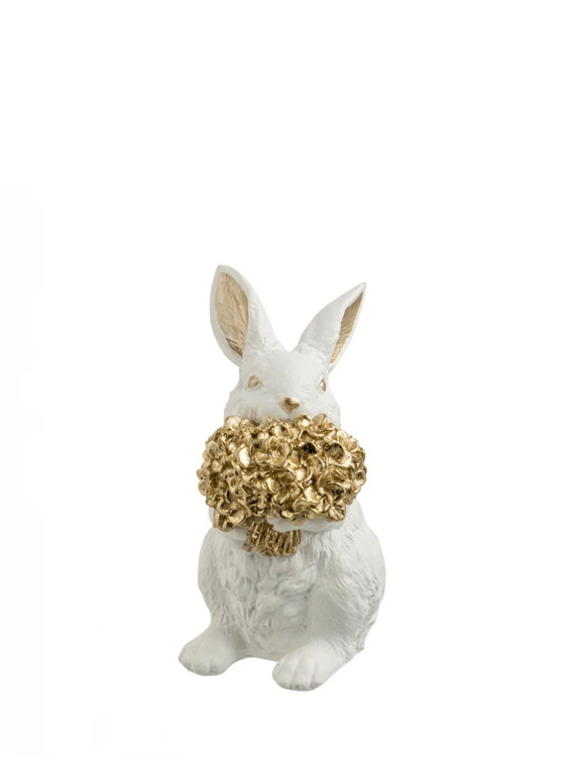 Διακοσμητικός πασχαλινός λαγός polyester σε λευκό χρώμα που κρατάει ενα χρυσό μπουκέτο από την Zen Collection - Διαστάσεις: 8x9x15εκ. - Η ελάχιστη ποσότητα αγοράς για αυτό το προϊόν είναι 2τμχ.