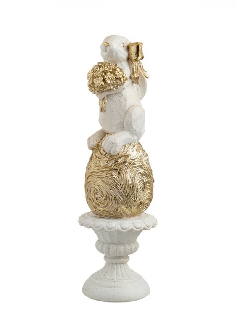 Διακοσμητικός πασχαλινός λαγός polyester πάνω σε βάση σε λευκό - χρυσό χρώμα από την Zen Collection - Διαστάσεις: 6,8x6,5x22εκ. - Η ελάχιστη ποσότητα αγοράς για αυτό το προϊόν είναι 2τμχ.