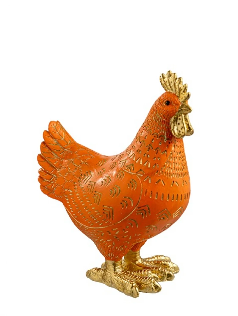 Διακοσμητικός πασχαλινός κόκορας polyester σε πορτοκαλί χρώμα με χρυσές λεπτομέρειες από την Zen Collection - Διαστάσεις: 14,5x9x18,5εκ.
