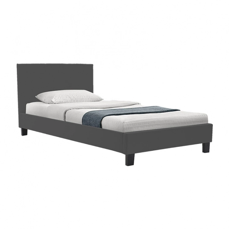 Κρεβάτι Nevil pakoworld ύφασμα ανθρακί με ξύλινο μαύρο πόδι 90x190εκ